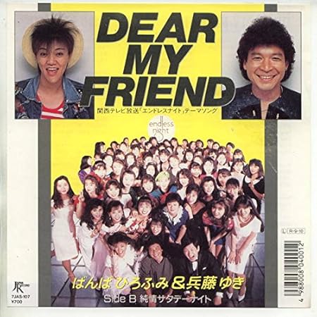 兵藤ゆきの2nd.シングル『DEAR MY FRIEND』は1988年9月10日リリース(「ばんばひろふみ・兵藤ゆき」名義)で、A面の『DEAR MY FRIEND』は関西テレビ情報バラエティ番組「エンドレスナイト( 1984年7月7日~1990年6月30日放送)」のテーマ・ソングに採用され、オリコンで「最高位:46位、登場週数:4週、売上数:1.0万枚」を記録しました。