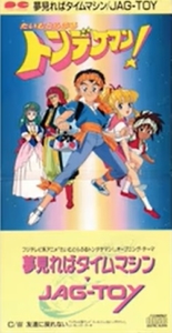 JAG-TOYの5th.シングル『夢見ればタイムマシン』は1989年11月21日にリリースされ、№1の『夢見ればタイムマシン』はフジテレビ系アニメ「たいむとらぶるトンデケマン!(1989年10月19日~1990年8月26日放送)」のオープニング・テーマ、B面の『友達に戻れない』はエンディング・テーマに採用されました。