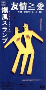 爆風スランプの22nd.シングル『友情≧愛』は1992年7月22日リリースで、№1の『友情≧愛』はTBS系バラエティ番組「KATO&KENテレビバスターズ(1992年4月11日~1992年9月26日放送)」のエンディング・テーマ、福武書店(現:ベネッセコーポレーション)「進研ゼミ 中学講座」のCMソングに採用され、オリコンで「最高位:19位、登場週数:10週、売上数:14.9万枚」を記録するヒットになりました。