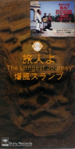 爆風スランプの29th.シングル『旅人よ~The Longest Journey』は1996年9月21日リリースで、№1の『旅人よ』は日本テレビ系バラエティ番組「進め!電波少年(1994年4月3日~1998年1月1日放送)」内で放送された「猿岩石ユーラシア大陸横断ヒッチハイク」の応援歌に採用され、オリコンで「最高位:8位、登場週数:21週、売上数:49.9万枚」を記録する大ヒットになりました。