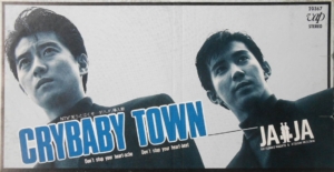 JA-JAの2nd.シングル『CRYBABY TOWN』は1989年12月5日リリースで、№1の『CRYBABY TOWN』は日本テレビ系バラエティ番組「笑うと泣くぞ・・・ダハ!!(1989年10月8日~1990年3月18日放送)」の挿入歌に採用され、オリコンで「最高位:44位、登場週数:3週、売上数:0.9万枚」を記録しました。
